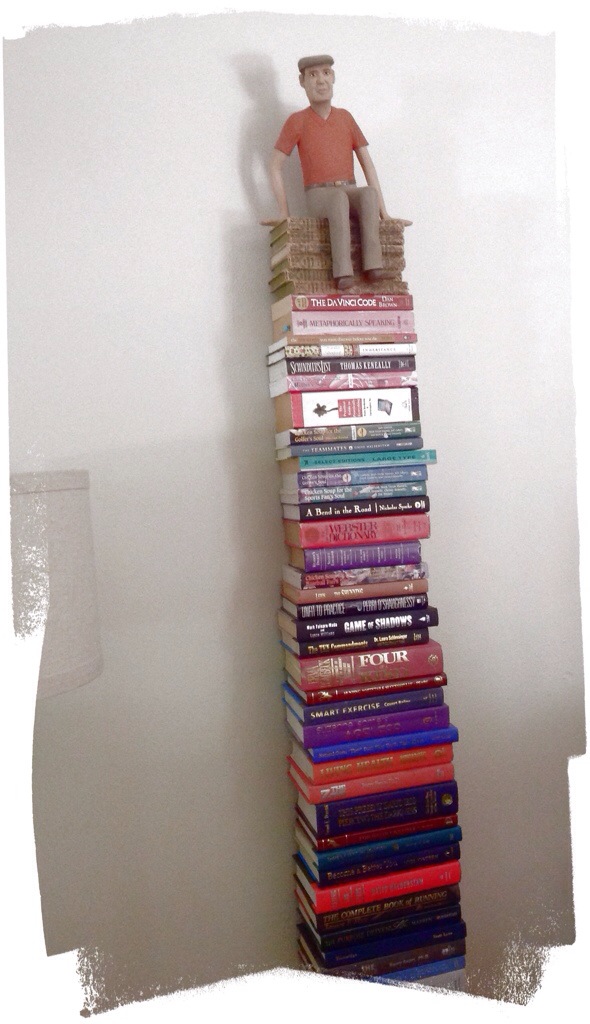 My dad (Don) has spent countless hours carving many character banks over the years for all of us on our birthdays. So, in honor of him on his birthday we brought our collections of hand-carved banks all back together, to surprise him – there were close to 100, maybe more (and that wasn’t even all of them). It was tricky sneaking them in, but somehow we managed to get them all set-up without him knowing about it. His grandson having car trouble (sorry, but thanks, Brett) did help to get him temporarily out of the house so we did not have to be quite so sneaky…and that was not planned!